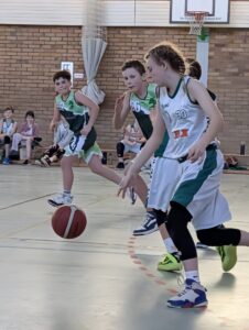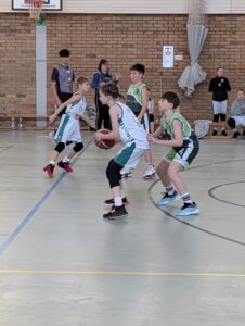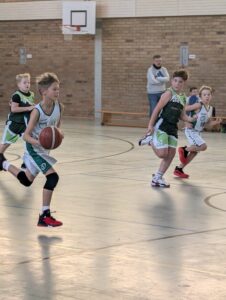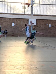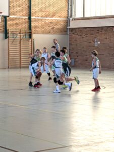 Nach einer etwas längere Pause baten beide Eisenhüttenstädter Schiedsrichter zum Rückspiel an den Mittelkreis. Bereits von Beginn an war zu erkennen, dass Fürstenwalde dieses 2.Spiel unbedingt gewinnen wollte. Das Team bewies Nehmerqualitäten und spielte jetzt wesentlich besser als Team. Aber auch die Gastgeber wollten ihren Teil zum guten Spiel beitragen. Sie bewiesen im Teamspiel weiter ansteigende Tendenz, auch wenn nicht alles glückte. In den ersten beiden Achteln dominierte der EBV mit 15:9 und 6:4. Nick Vorhoff brachte den Ball und zog zum Korb, bei einem Fehlwurf waren Hannah Greger bzw. Tjaden Korm da, um den Rebound einzusammeln und den fälligen Korbleger einzunetzen. Louis Mielenz dribbelte auch unter Bedrängnis sicher und spielte im Teamwork. Ein großes Lob gab es noch einmal von der Trainerin für Henry Matteo Pirke, der defensiv richtig arbeitete und im Umkehrspiel Akzente setzte. Auch die übrigen bis dato Nichtgenannten wie Leon Berg, Miriam Zucknick und Emilia Dembinska setzten sich stark in Szene.