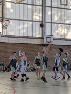 Nach der sehr verdienten Halbzeitpause für beide Teams ging es kämpferisch in die 2.Halbzeit. Auch dort spielten alle Beteiligten, sowohl die der Gastgeber als auch die der Gästespieler sehr einsatzstark. Beim EBV war es einmal mehr Nick Vorhoff, der mit 43 Punkten und 2 erfolgreichen Dreiern in den Mittelpunkt rückte. Ihm standen in keiner Weise zum Beispiel die Spielerin Hannah Greger mit 10 Punkten sowie Tjaden Korm mit 5 Punkten und Max Ebert mit 3 Punkten nach. Bei den Gästen war es der Spieler M. Altmann. Er machte mit seinen gekonnten Dribblings